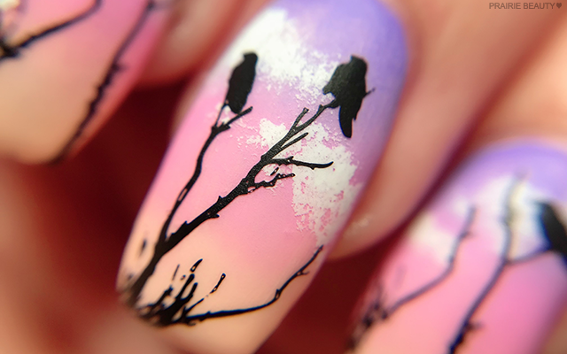 Happy Monday, everyone! For this month's #CBBxManiMonday theme, we're doing something a little bit different with what I've been thinking of as Nail Art Roulette. We chose 5 colour stories (sunset, rainbow, pink, black & white, and neon) and 5 themes (gradient, packaging inspired, matte, texture and minimalist) and then each of us randomly generated which pairings we're working with for each week. For this first week, the colour story I got was "Sunset" and the theme I got was "Matte" - and I have to tell you, I was SUPER excited about this pairing. Sunsets are one of the most soothing things in the world to me and I'm 100% the person who you'll find taking photos anytime there's a particularly pretty sunset. I also really, really the look of branches silhouetted against a really  beautiful sunset, which is why I went in that direction rather than the very popular palm tree silhouetted sunset nails.
